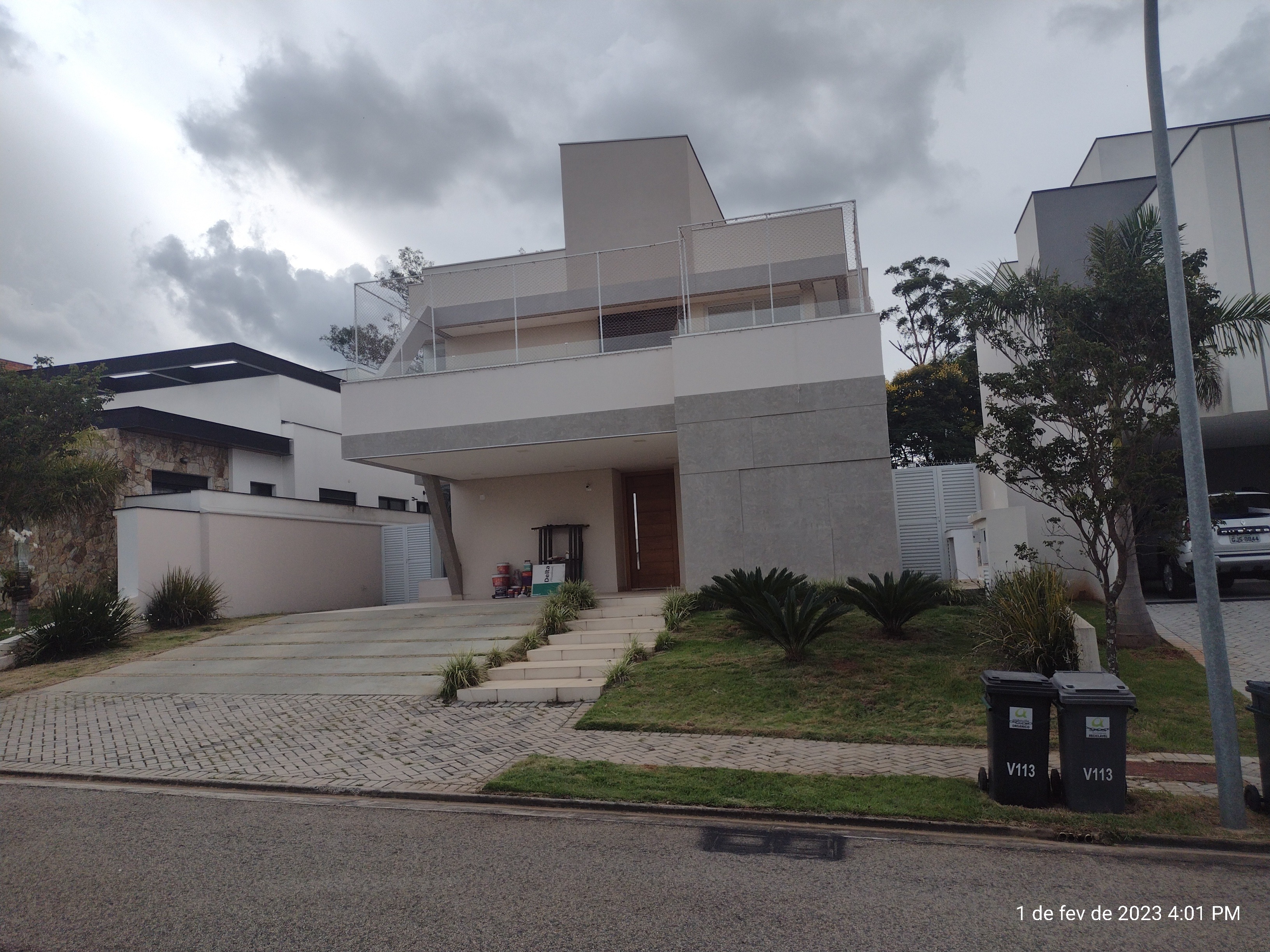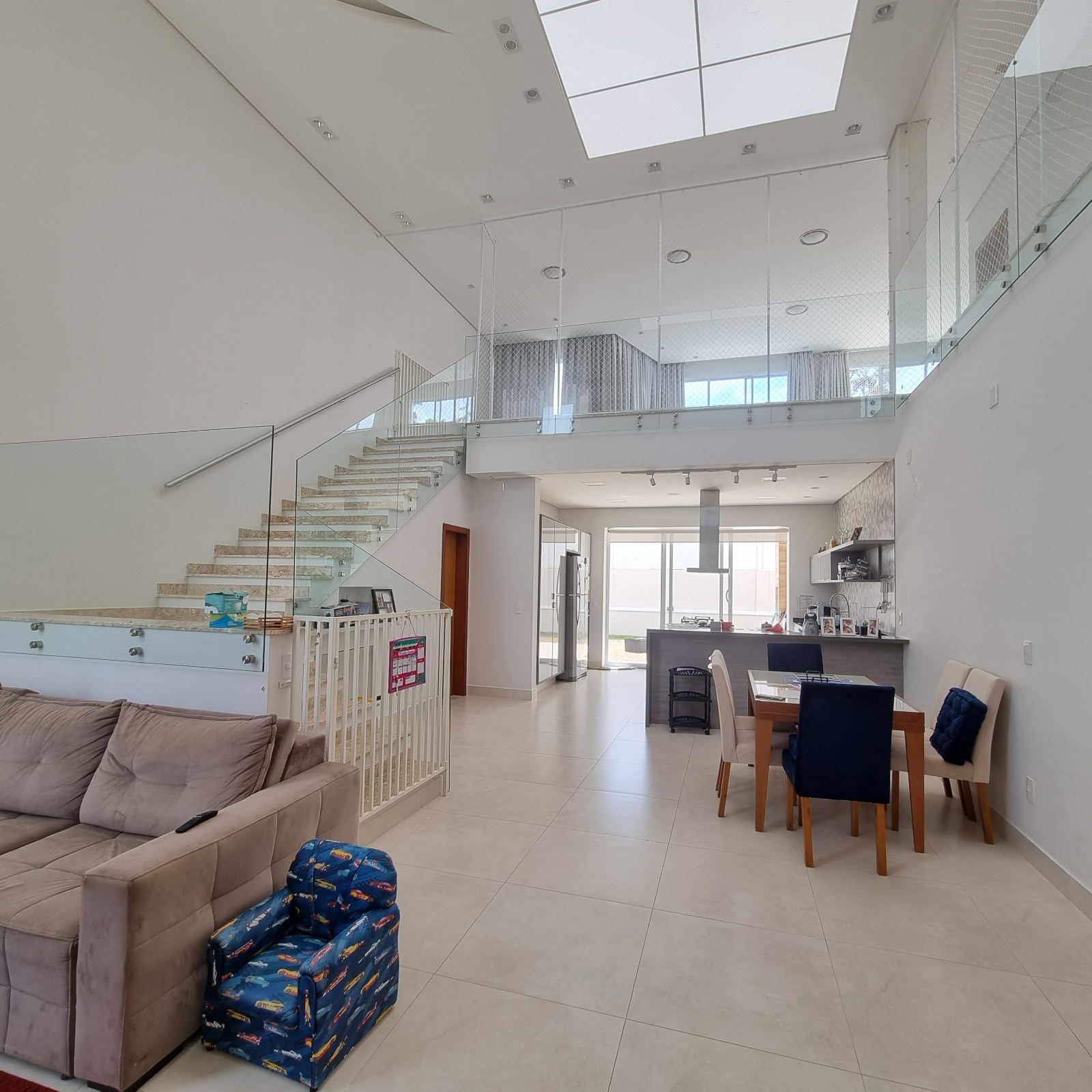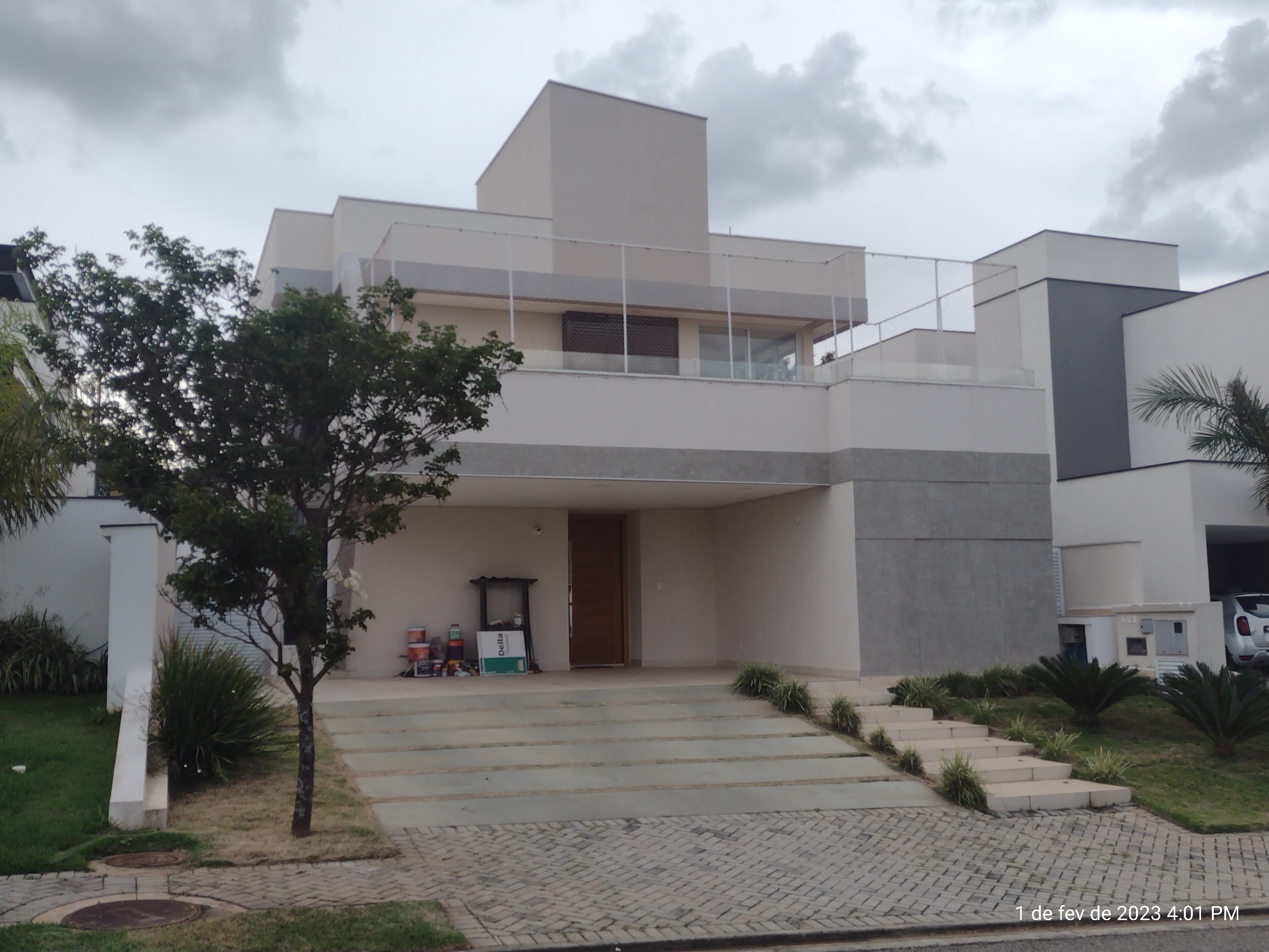 Térrea com mezanino - Garagem para 4 carros; - 2 suítes; - Sala principal; Pé direito de 6m; Painel de TV que vai até o teto; Infra para instalação de lareira a gás; Infra para a instalação de home theater (fiação por baixo do piso); 2x Equips. de ar condicionado INVERTER; Infra para instalação de Automação residencial; Com projeto luminotecnico, com gesso trabalhado; Lavabo. - 2 Suítes simples Armários embutidos; Janela de PVC dom vedação dupla elétrica. - 1 Suíte máster 2 banheiros; 2 closets com armários embutidos; Banheira com vista para a TV; Divisória com parede de vidro blindex; Janela de PVC com vedação dupla elétrica; - Cozinha Modulados Todeschine; Coifa instalada; Cook top instalado; Forno embutido instalado; Grande armário para uso como dispensa. - Quintal Infra estrutura pronta para instalar piscina e cascata; Espaço para varal. PISO SUPERIOR - Mezanino com espaço salão de festas/jogos - Cozinha superior (de apoio) com armários embutidos; - Banheiro social; - Espaço para quarto/escritório; - Espaço para academia com paredes de vidro; - Sacada com infra para telhado verde e/ou ofurô DESRIÇÃO - 2 caixas de agua de 1000L - Aquecedor solar o 1 boiler de 400L - 3 SUITES - 1 quarto/escritório; - 7 banheiros com pedras prime. Área do terreno:423,79m2 Área construída:321,63m2  REF:CA01140