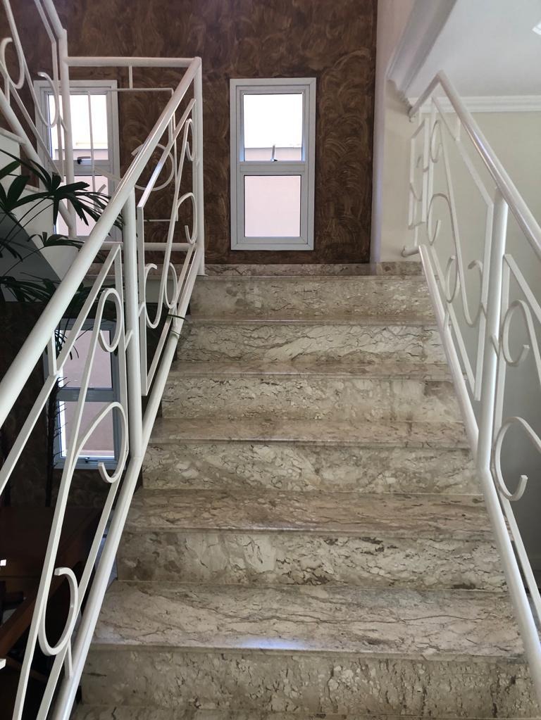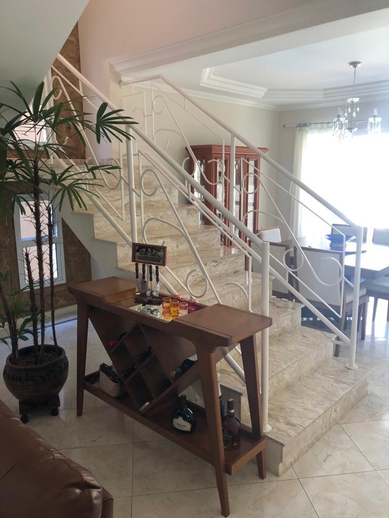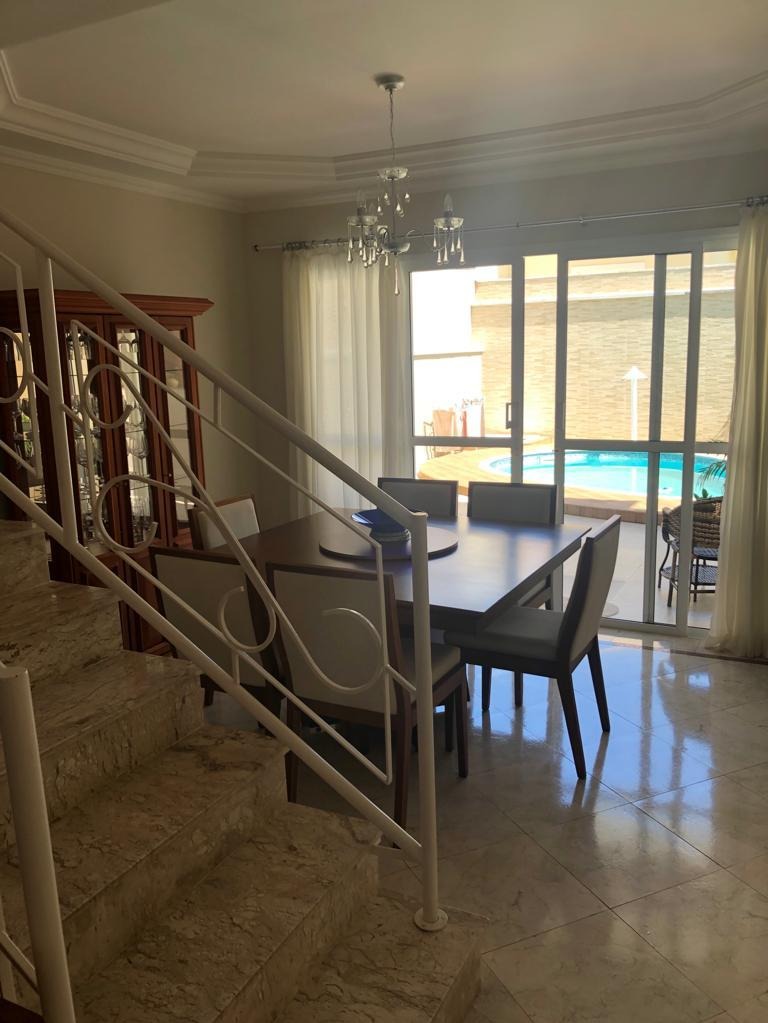 O imóvel é composto de : garagem coberta para 3 veículos; escritório, lavabo; sala com 3 ambientes; cozinha; dispensa; área de serviço, piscina; espaço churrasqueira ( com banheiro e quartinho) e laterais da casa, com portões. No pavimento de cima, escadas com dois lances; 3 suítes com closet( a principal com banheira); sacadas nas 3 suítes; sala de tv ou escritório, armários embutidos nos quartos e banheiros da Delano e armários na cozinha  REF:CA01327