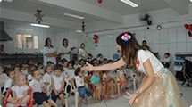 Já as crianças da Creche OPAI Imaculada mergulharam no mundo de fantasia com a contação de histórias do livro “Tem História na Caixinha”, contada pela própria autora, Rosaura Mello.