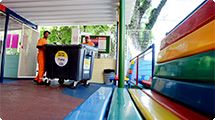 O Centro de Educação Infantil (CEI 07) “Francisca Moura Pereira da Silva”, localizado na Praça Pio XII, Santa Rosália, foi o primeiro a receber o novo contêiner na manhã de hoje. Patricia Cristina Camargo Fernandes, diretora da unidade que conta com 240 alunos, ressaltou que já esperava a substituição porque os contêineres que estavam em uso eram de 240 litros, capacidade quatro vezes menor que o novo. Nas unidades educacionais os contêineres ficam na parte interna, mas com fácil acesso para a coleta mecanizada.