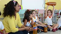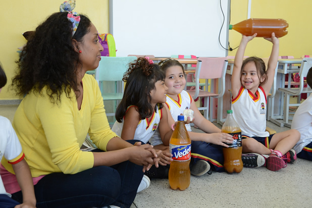 Durante as aulas, as crianças recebem orientação sobre a importância da reciclagem de óleo de cozinha. Além disso, se divertem falando para que o óleo é usado nas suas casas. Alimentos como pastéis e coxinhas são os mais lembrados quando o assunto é fritura.