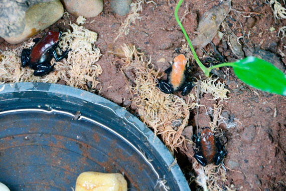 Os novos habitantes estão em um terrário móvel (tipo um aquário). “Esse tipo de sapo é muito pequeno. É um animal inédito no zoológico e, devido ao seu tamanho, a população vai ter de procurar bastante”, avisa o veterinário.
