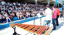 Mais de 900 alunos da E.M. “Dr. Achilles de Almeida”, da Vila Hortência, tiveram a oportunidade, nesta quarta-feira (dia 5), de conhecer os instrumentos de percussão de uma orquestra. Na quadra poliesportiva da escola, pela manhã e à tarde, cinco músicos da Orquestra Sinfônica de Sorocaba, da FUNDEC (Fundação de Desenvolvimento Cultural de Sorocaba), apresentaram um repertório musical e, de uma forma didática, ilustrando alguns ritmos e cada instrumento utilizado pelo grupo.